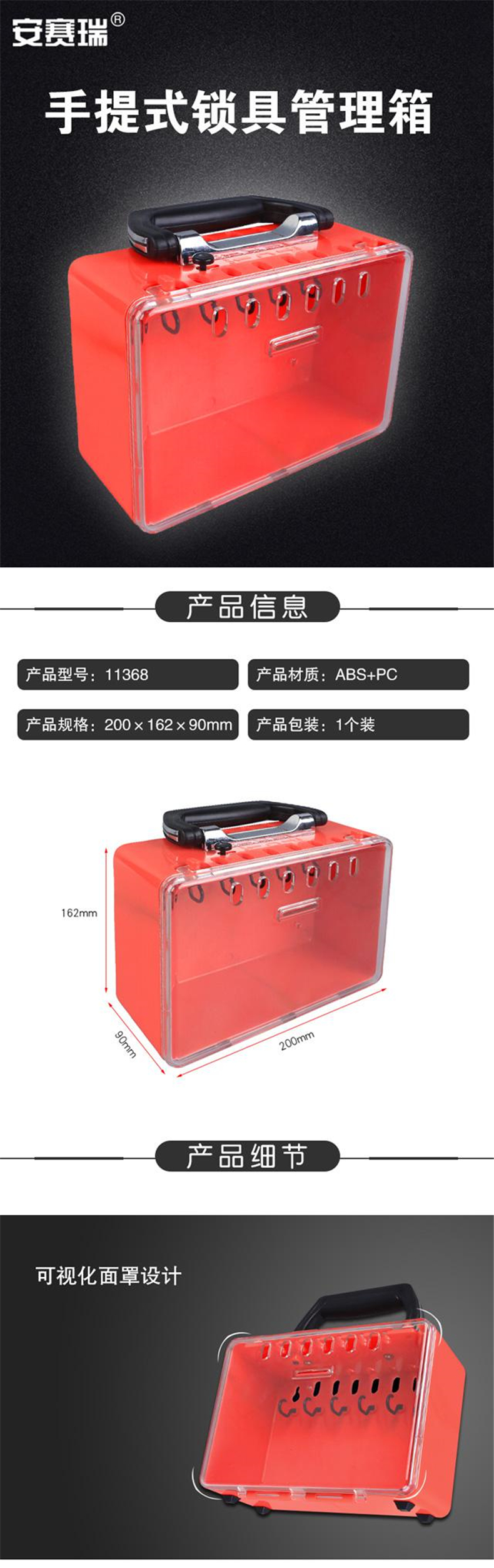 安赛瑞 11368 手提式锁具管理箱 (空箱) 200×162×90mm按(个)销售   收藏