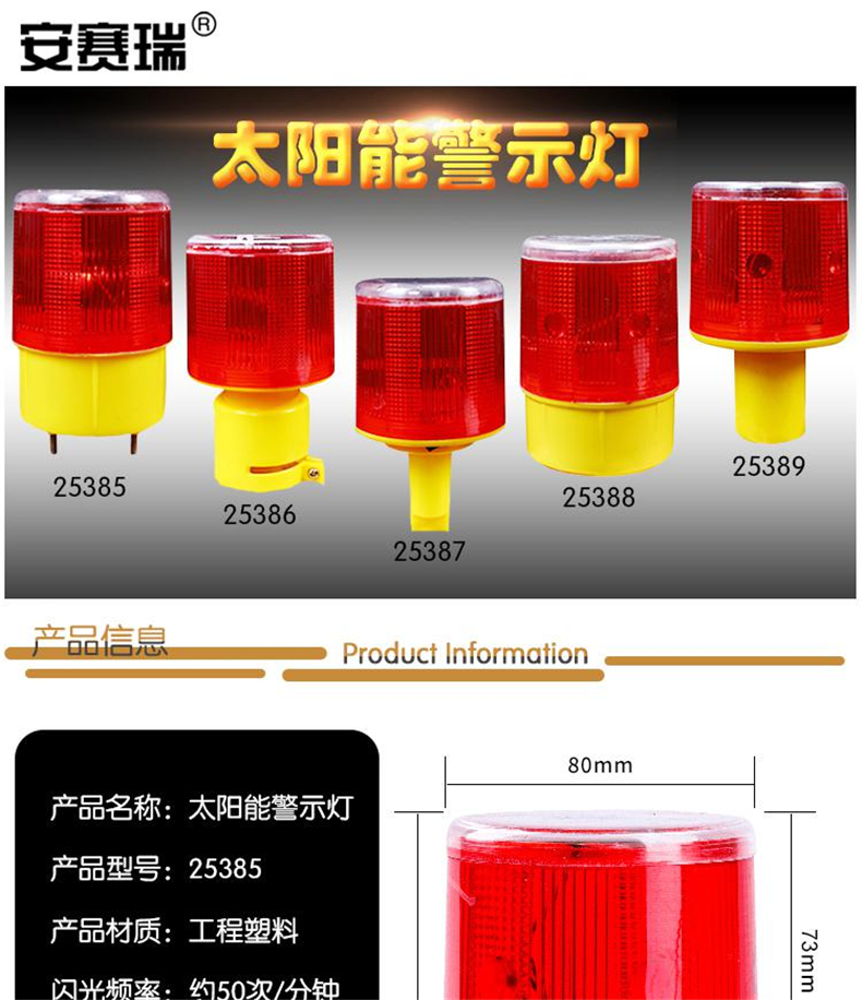 供应商:史泰博 品牌:安赛瑞 产地:中国 重量:0.120KG 销售单位:个 包装清单:太阳能警示灯*1