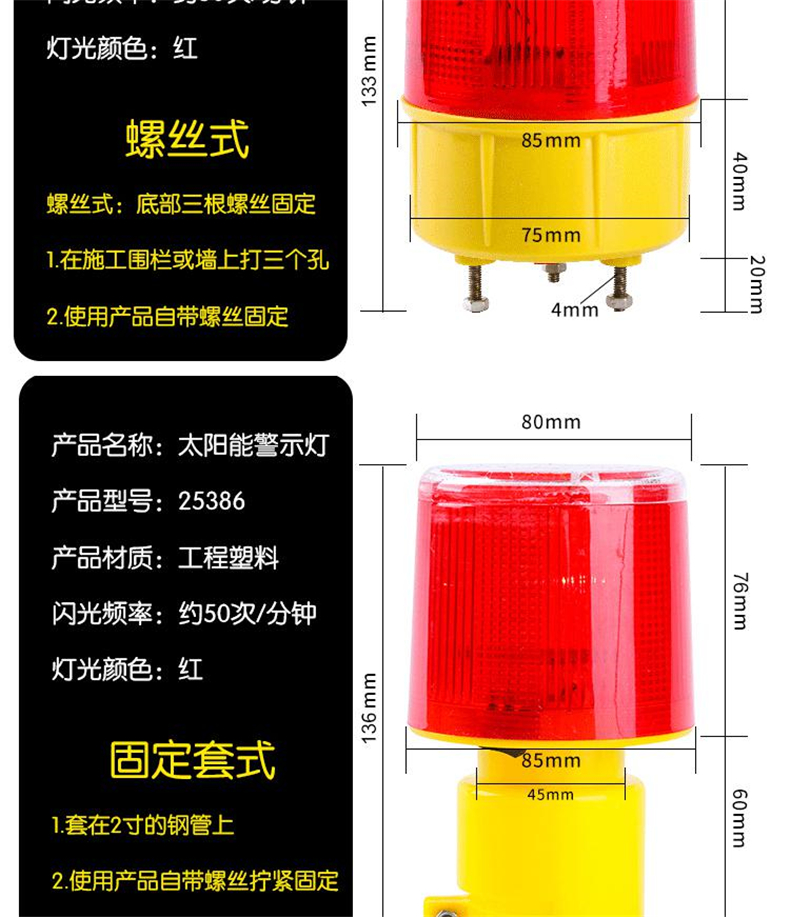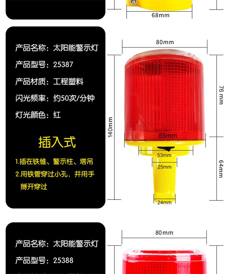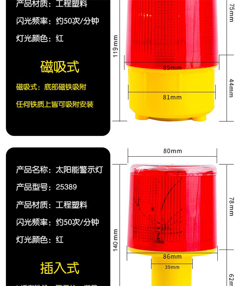• 安赛瑞 25387 太阳能警示灯 插入式经济型 长140mm宽80mm 2个起订按(个)销售