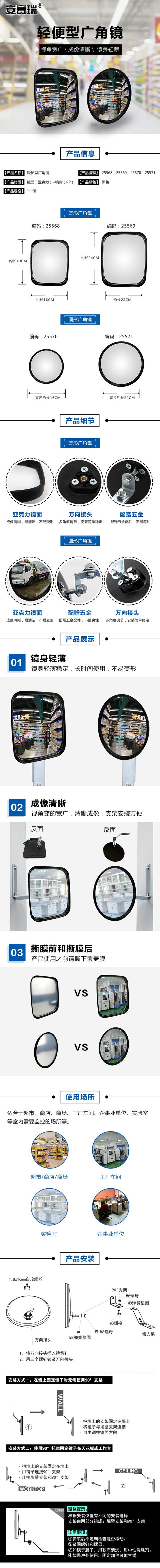 供应商:史泰博 品牌:安赛瑞 产地:中国 重量:0.300KG 销售单位:个 包装清单:轻便型方形广角镜*1