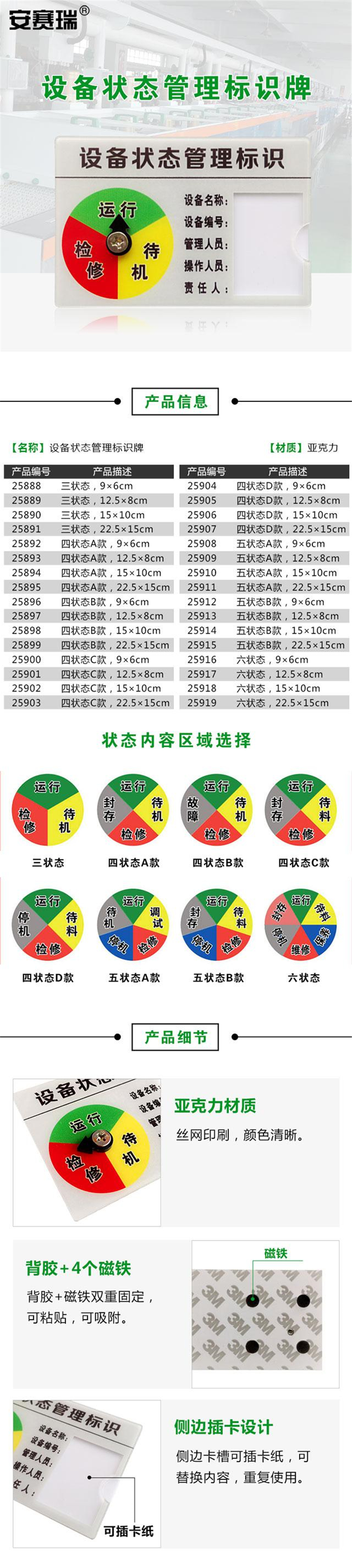 安赛瑞 25908 设备状态管理标识牌 亚克力(五状态A款) 9×6cm按(个)销售   收藏