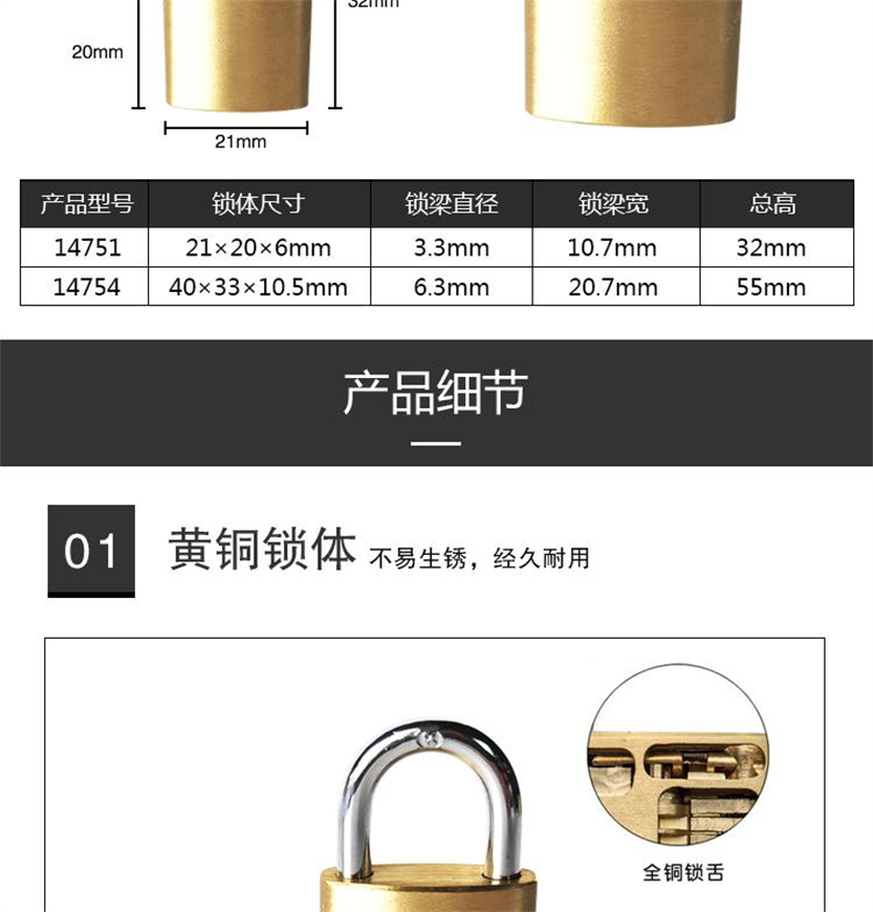 • 安赛瑞 14754 黄铜挂锁 40mm按(把)销售
