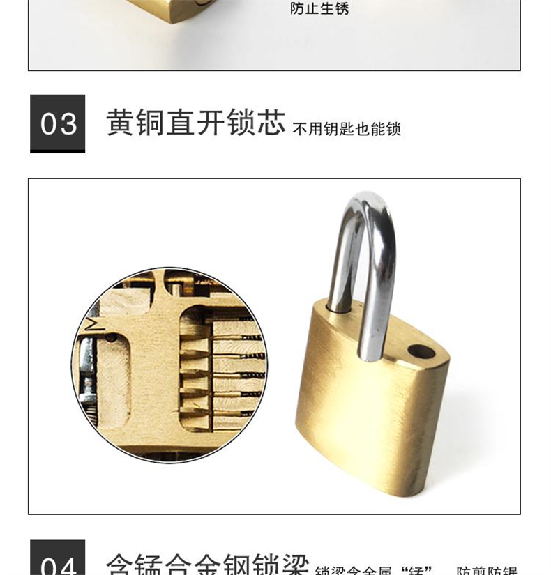 安赛瑞 14754 黄铜挂锁 40mm按(把)销售   收藏