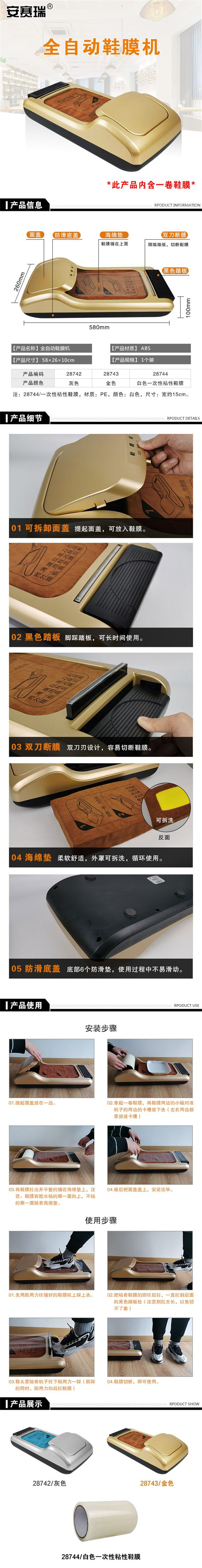 安赛瑞 28742 全自动鞋膜机 灰色按(个)销售   收藏