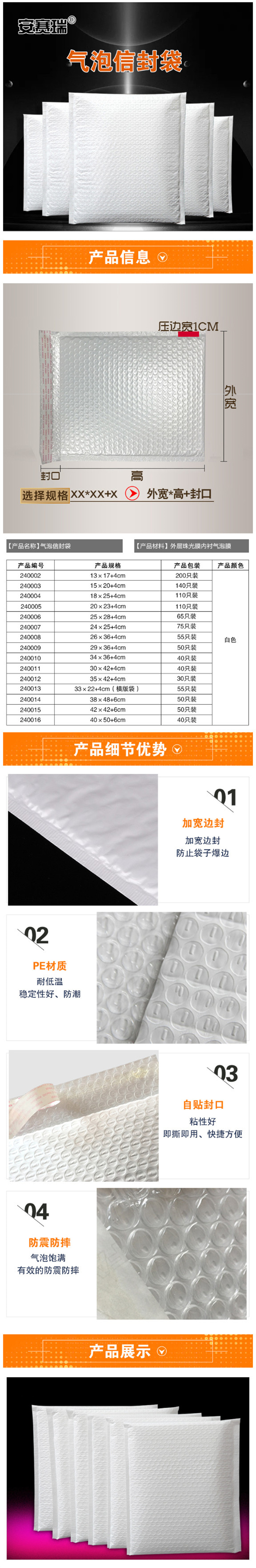 安赛瑞 240003 白色珠光膜气泡袋 15×20+4cm 140个装按(包)销售   收藏
