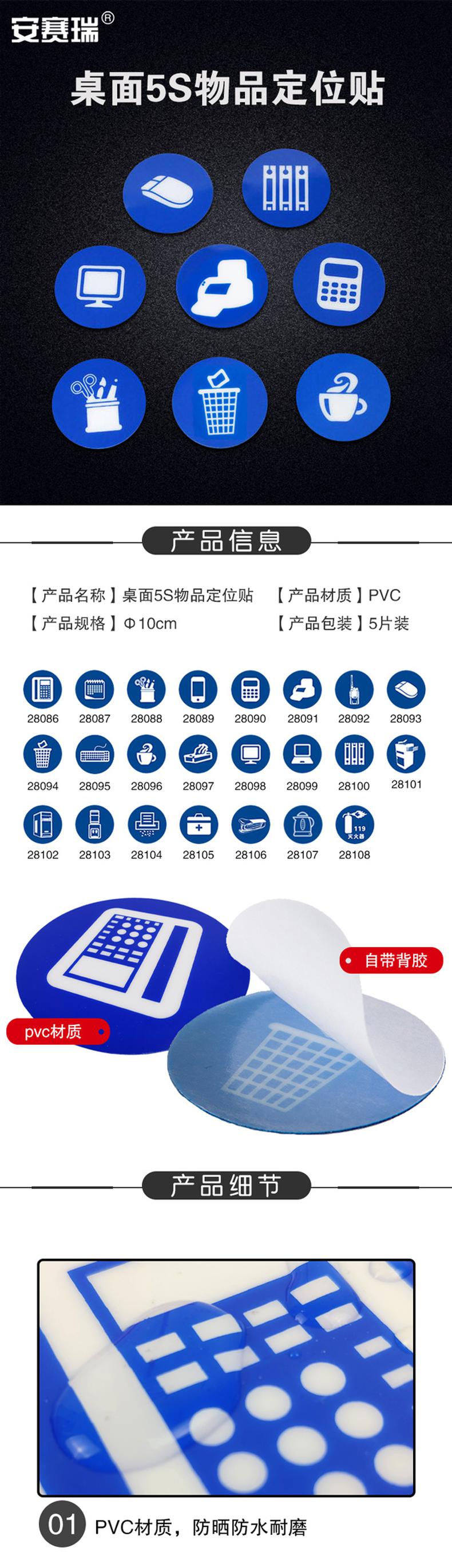 • 安赛瑞 28089 桌面5S管理定位贴 5片装 手机 直径10cm按(包)销售