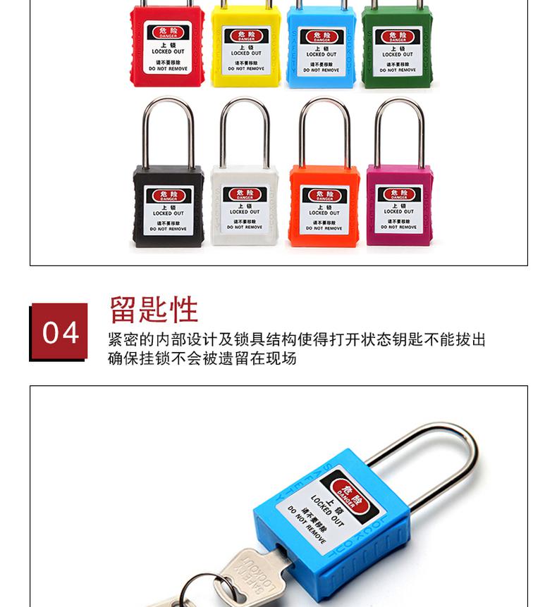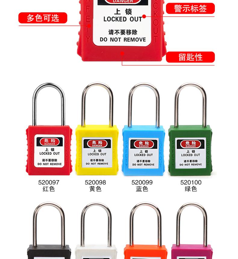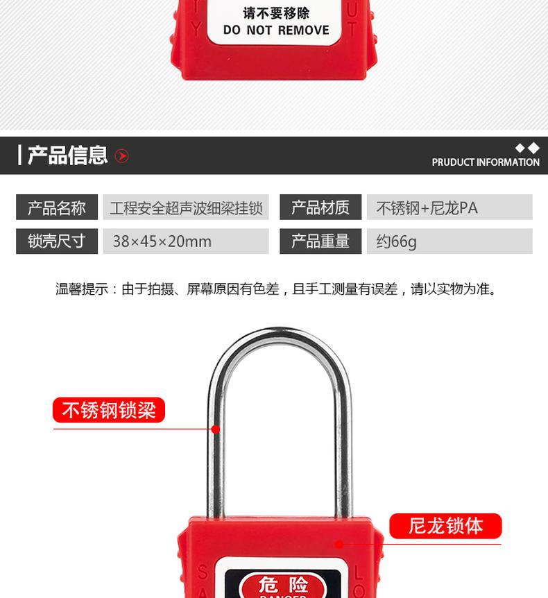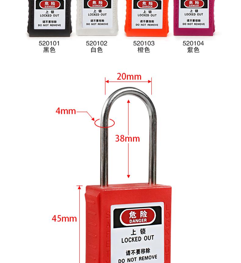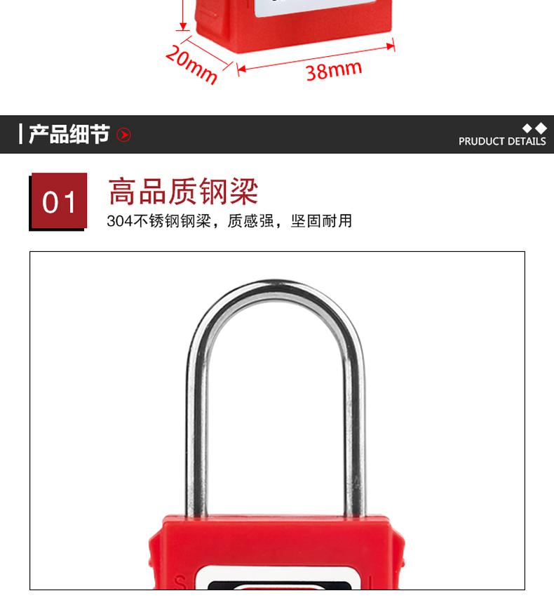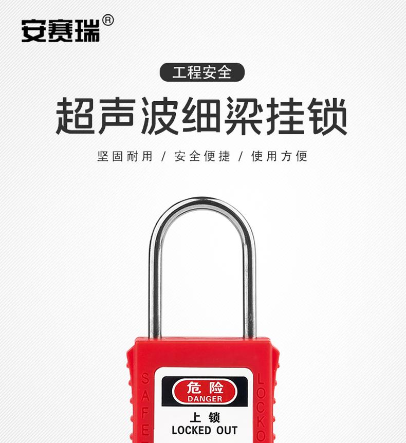 • 安赛瑞 520097 工程安全超声波细梁挂锁 304不锈钢38x4mm 不通开型 红色按(盒)销售