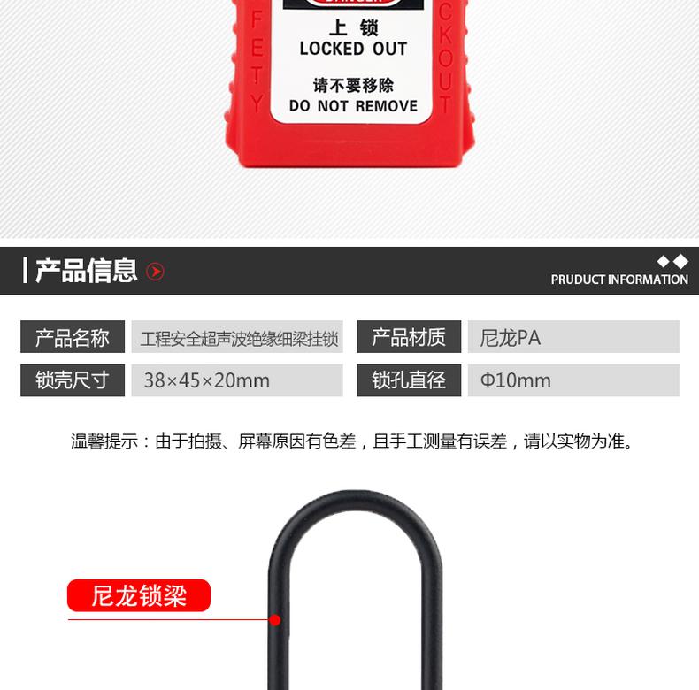 供应商:史泰博 品牌:安赛瑞 产地:中国 重量:1.000KG 销售单位:盒 包装清单:工程安全超声波绝缘细梁挂锁*1