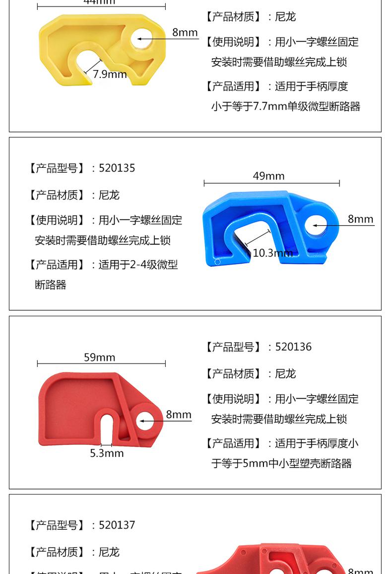 • 安赛瑞 520134 简易断路器锁 适用于手柄厚度≤7.7mm 2个起订按(个)销售