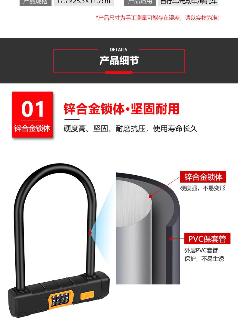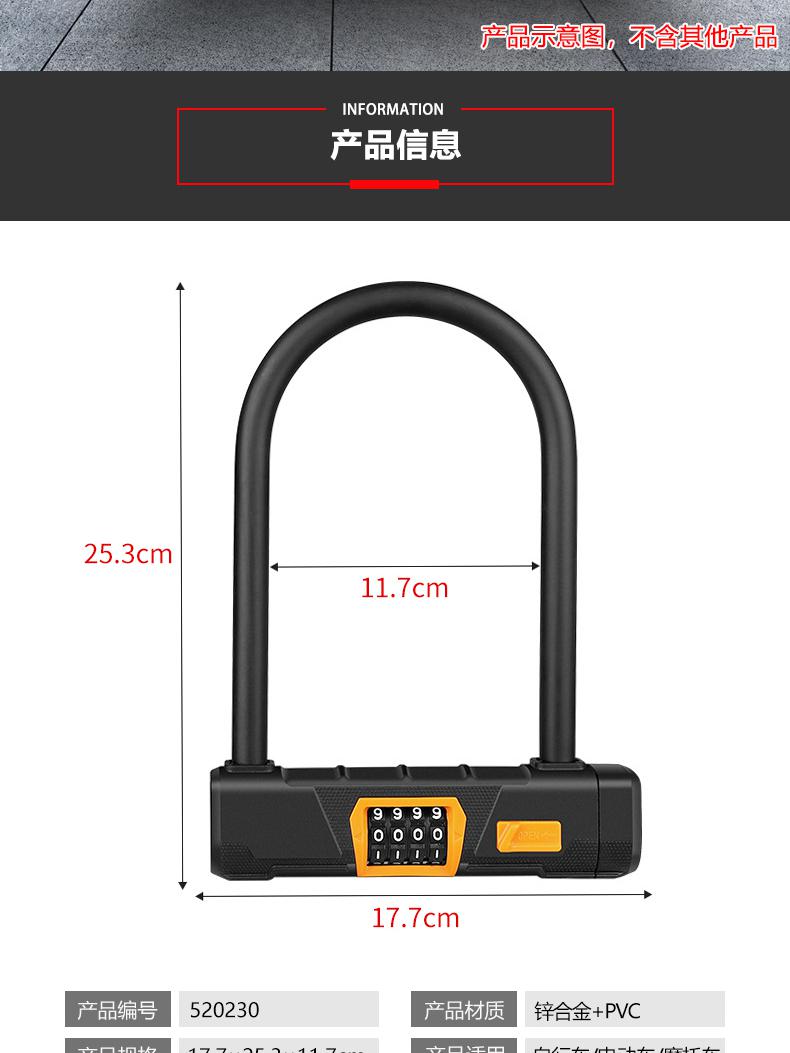 安赛瑞 520230 U形防盗密码锁 17.7*25.3*11.7cm按(把)销售   收藏
