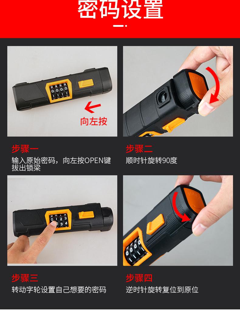 • 安赛瑞 520230 U形防盗密码锁 17.7*25.3*11.7cm按(把)销售