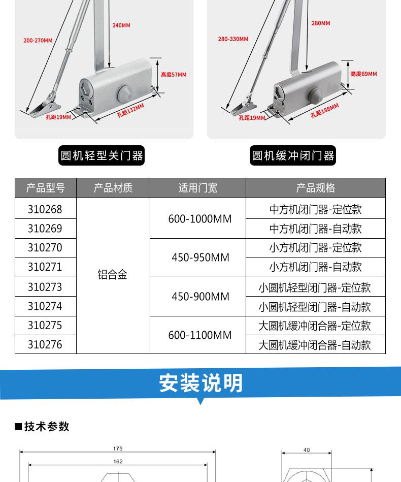 • 安赛瑞 310274 液压缓冲闭门器 小圆机轻型自动款按(个)销售