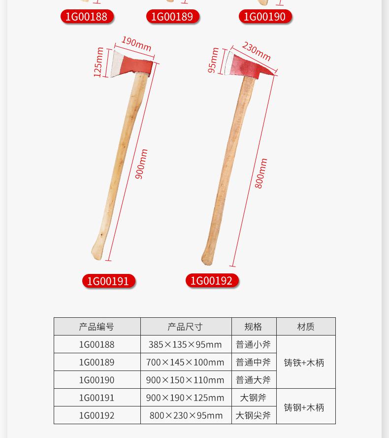 • 安赛瑞 1G00192 尖头斧 木手柄铸钢 大号按(把)销售