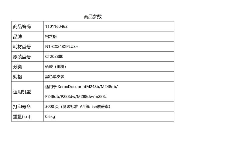 | 适用机型 | Xerox Docuprint M248b/M248db/P248db/P288dw/M288dw/m288z |