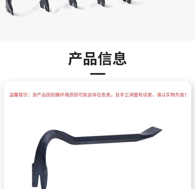 供应商:史泰博 品牌:安赛瑞 产地:中国 重量:1.600KG 销售单位:个 包装清单:两用撬棍 消防拆除工具*1