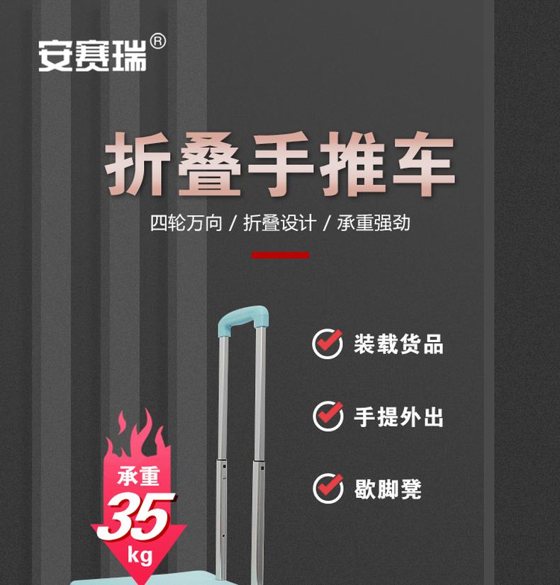 安赛瑞 200485 折叠购物车 拖货折叠手拉车 四轮带盖 蓝象牙白按(辆)销售   收藏