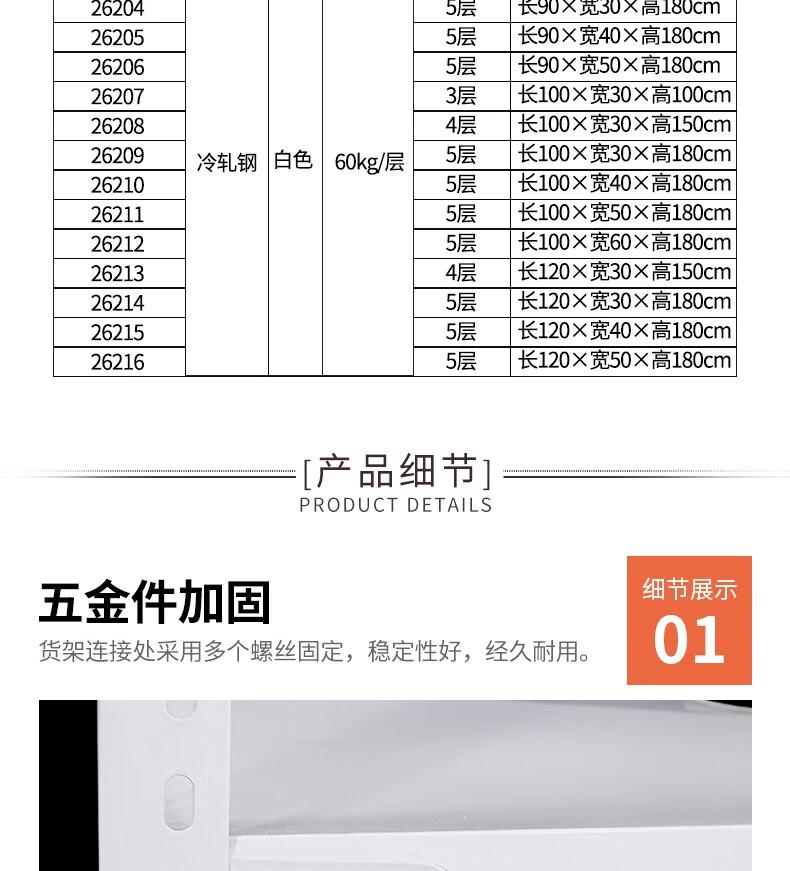• 安赛瑞 26203 仓储轻型货架 80×40×180=5层 60kg/层按(个)销售