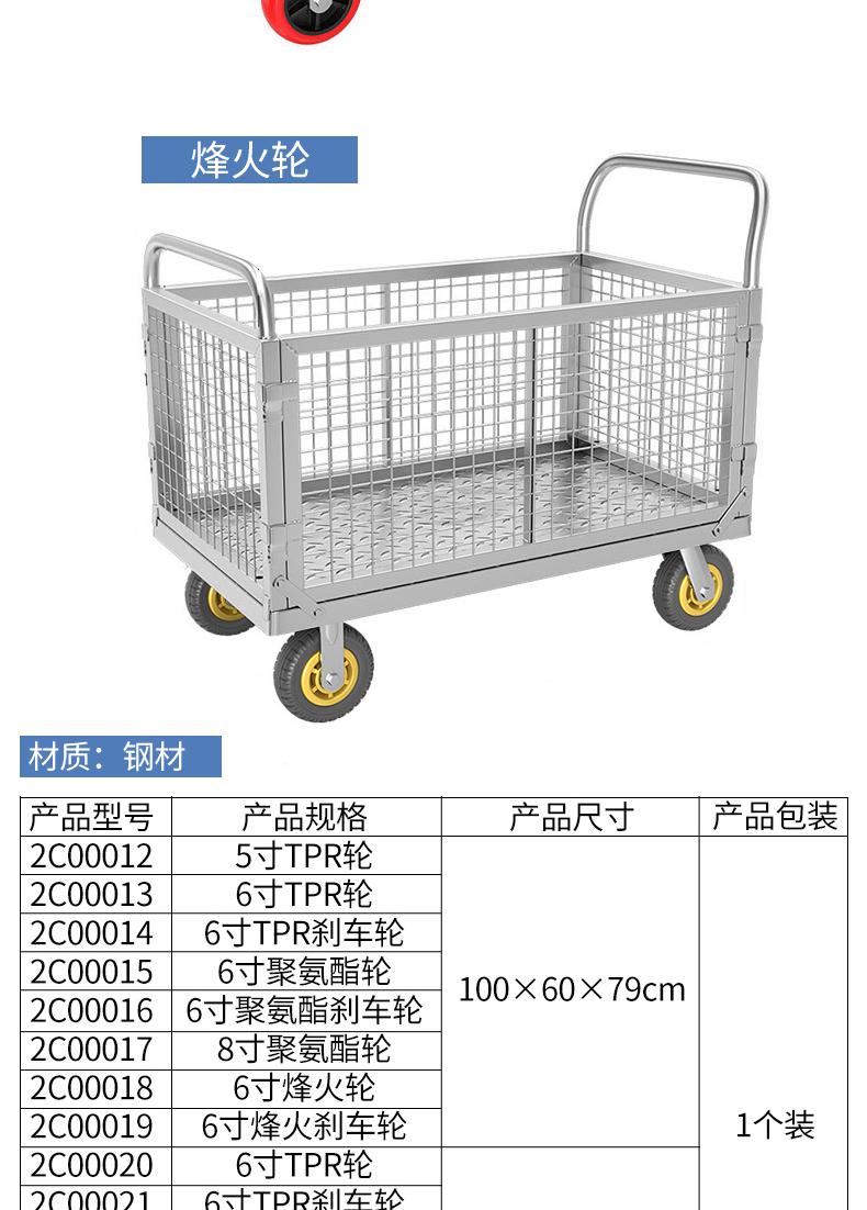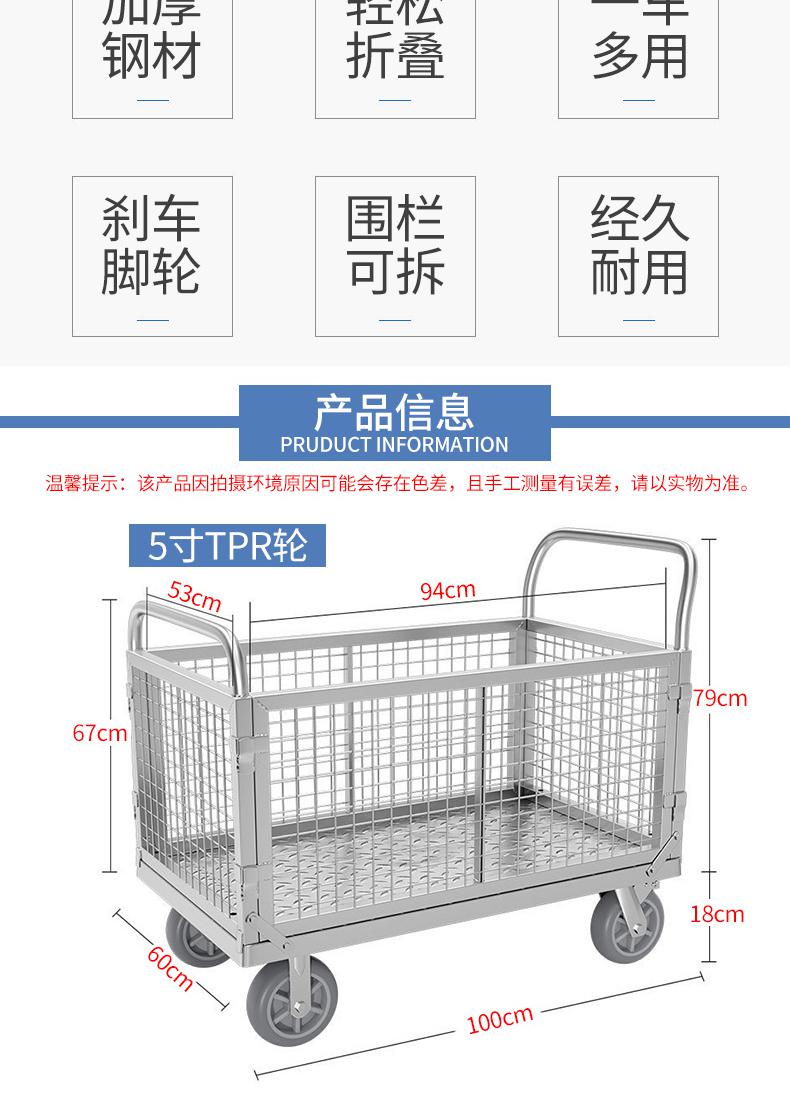 安赛瑞 2C00016 全折叠围栏网格手推车 100×60cm6寸聚氨酯刹车轮按(辆)销售   收藏