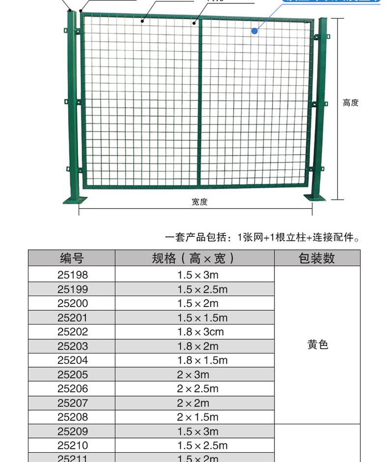 • 安赛瑞 25203 隔断网铁丝网防护网 1.8×2m 一张网一根柱 黄色 5套起订按(套)销售