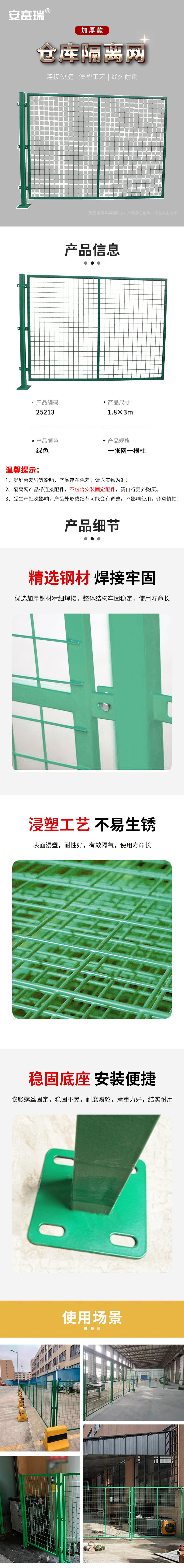 • 安赛瑞 25213 隔断网铁丝网防护网 1.8×3m 一张网一根柱 绿色 5套起订按(套)销售