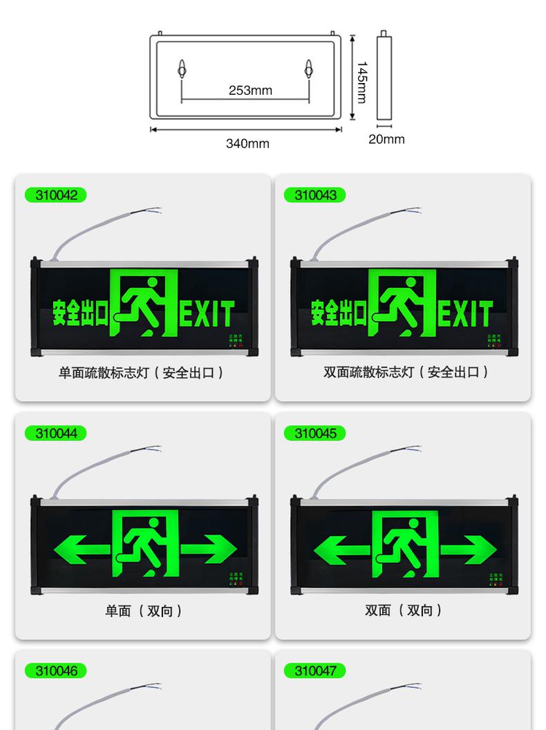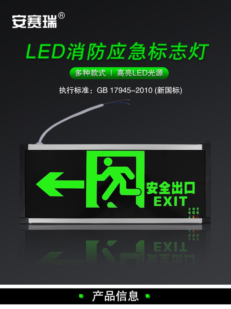 安赛瑞 310045 新国标安全出口消防指示灯 双面双向按(个)销售   收藏