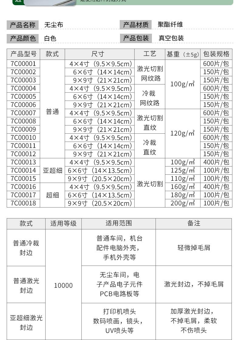供应商:史泰博 品牌:安赛瑞 产地:中国 重量:0.000KG 销售单位:包 包装清单:冷裁网纹无尘布*1