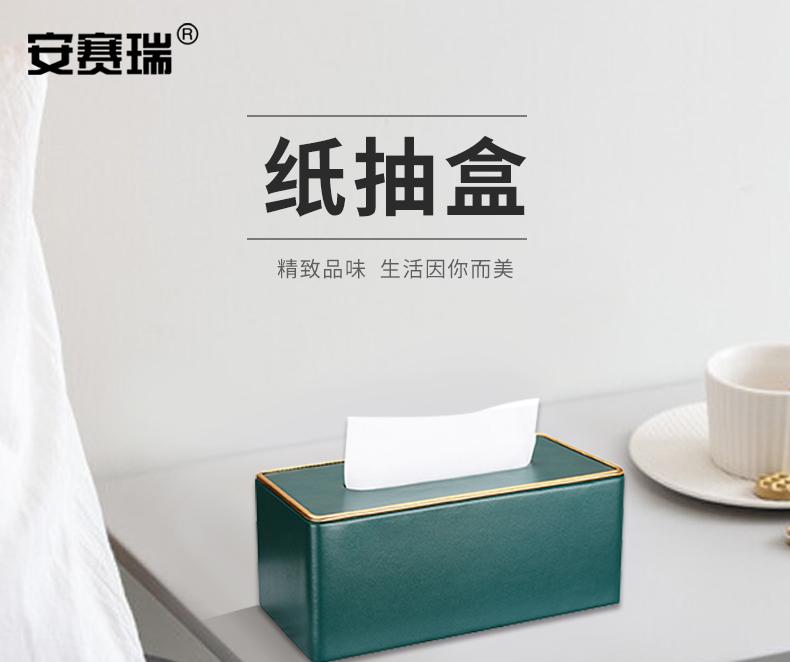 安赛瑞 7D00021 皮革抽纸盒 亚麻灰金边中号按(个)销售   收藏