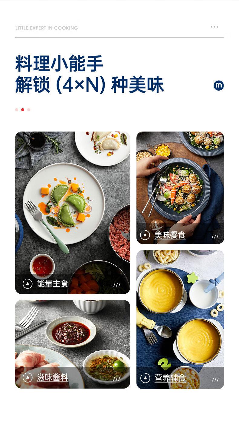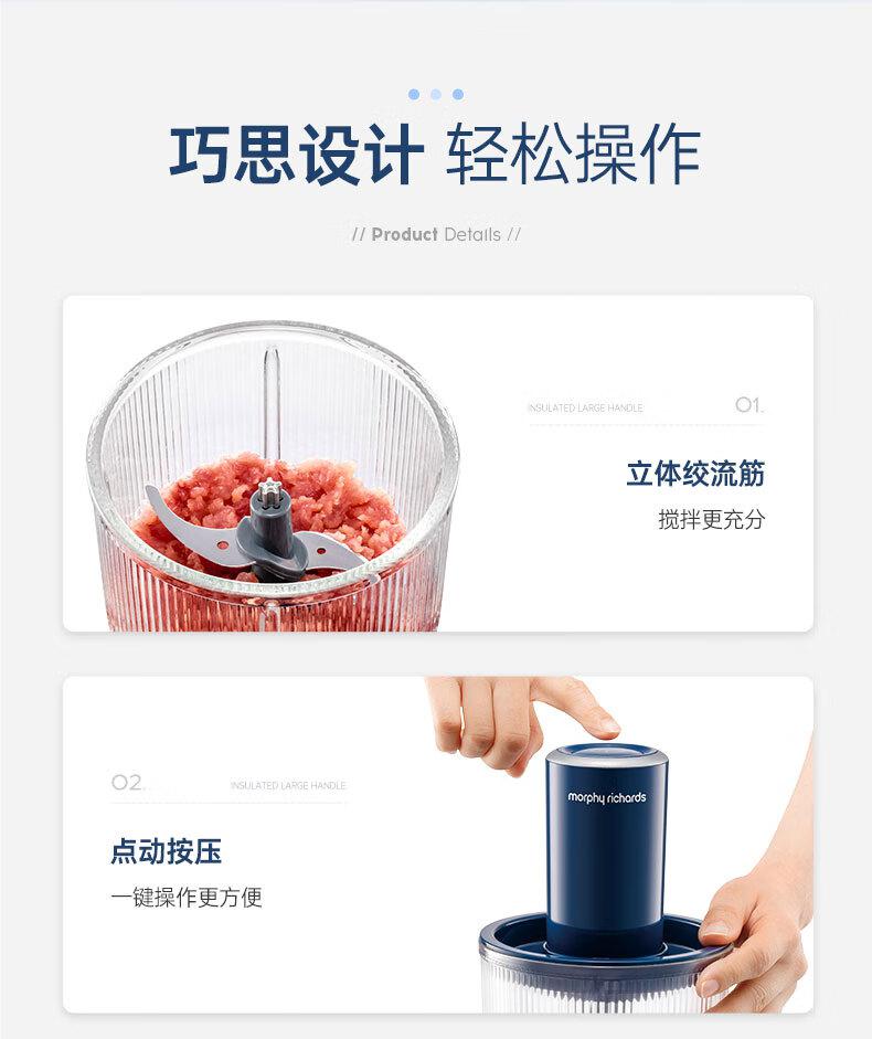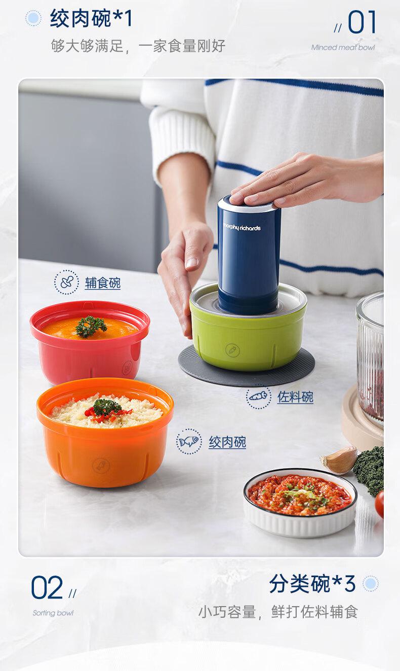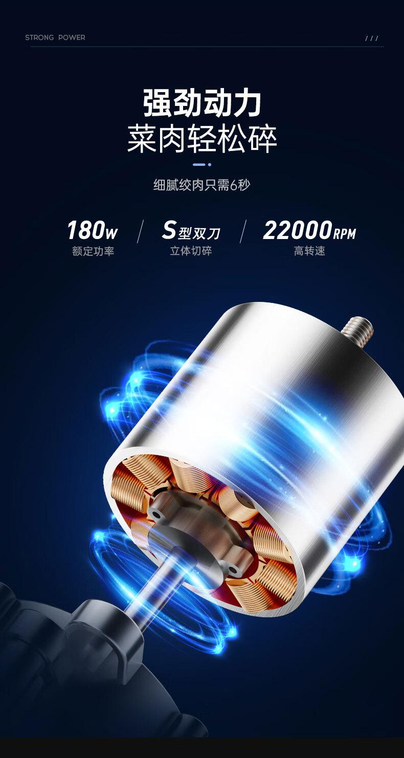 | 包装清单 | 绞肉机*1、佐料碗*1、辅食碗*1、玻璃碗*1、绞肉碗*1、双叶刀头*1、四叶刀头*2 |