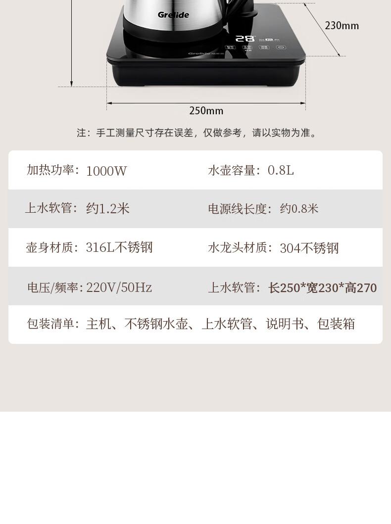 | 包装清单 | 电热水壶*1 说明书*1 |