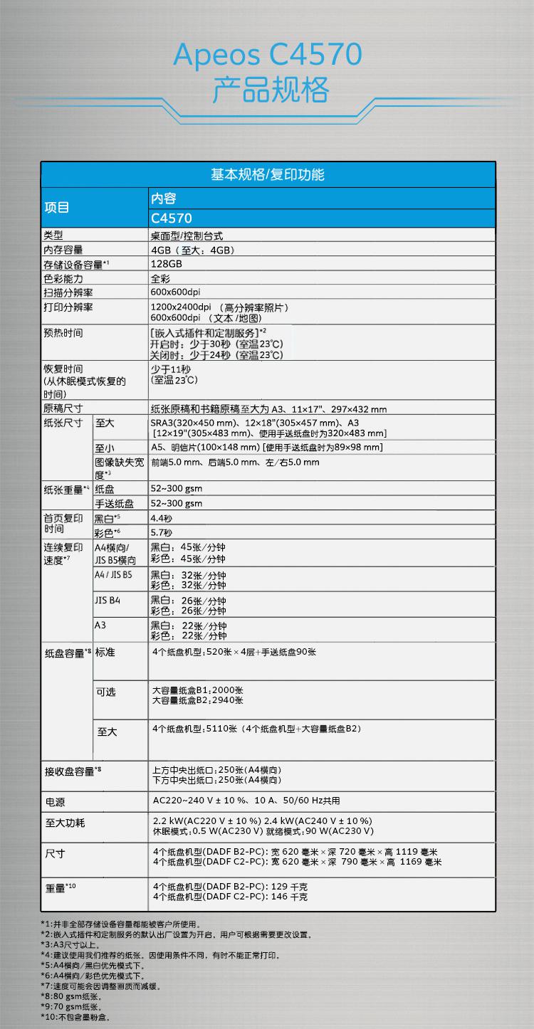 | 纸张容量 | 2170张:520张*4层+手送纸盘90张 |