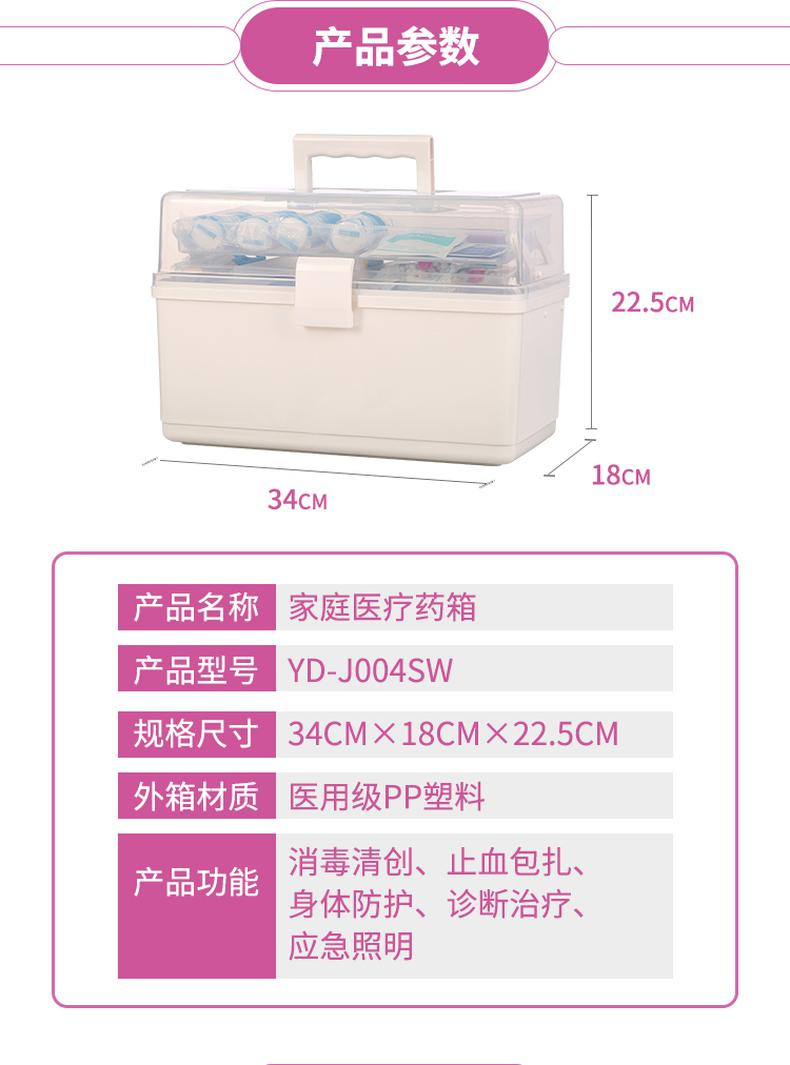 • 爱备护 YD-J004SW 家庭医疗药箱 34cm×18cm×22.5cm  米白色  含31种90件急救用品 配置清单参见详情页按(套)销售