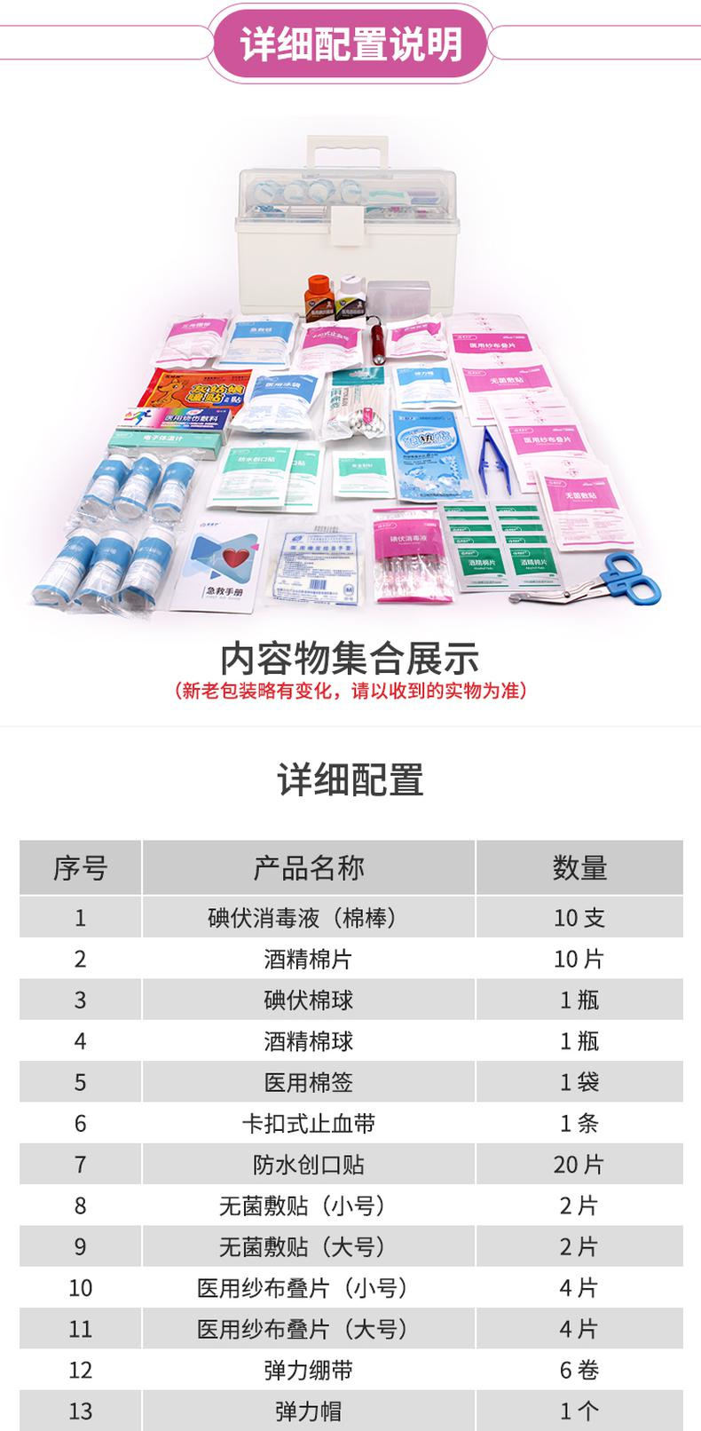 爱备护 YD-J004SW 家庭医疗药箱 34cm×18cm×22.5cm 米白色 含31种90件急救用品 配置清单参见详情页按(套)销售   收藏