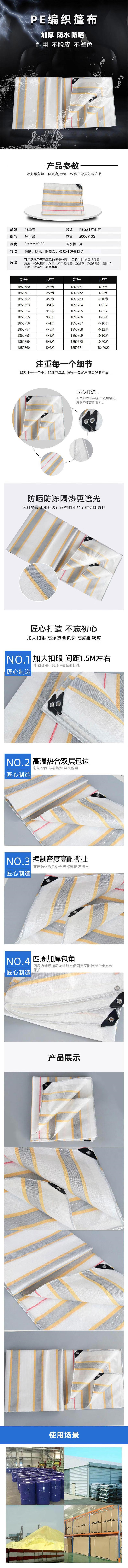 供应商:史泰博 品牌:苏识 产地:中国 重量:0.000KG 销售单位:张 包装清单:200克篷布 全新料加厚防雨布防晒苫布*1