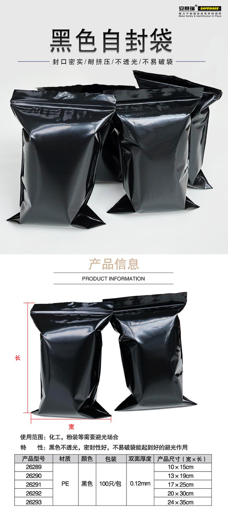 • 安赛瑞 26293 黑色自封袋 避光袋 PE包装袋封 24×35cn 黑色 100只/包按(包)销售