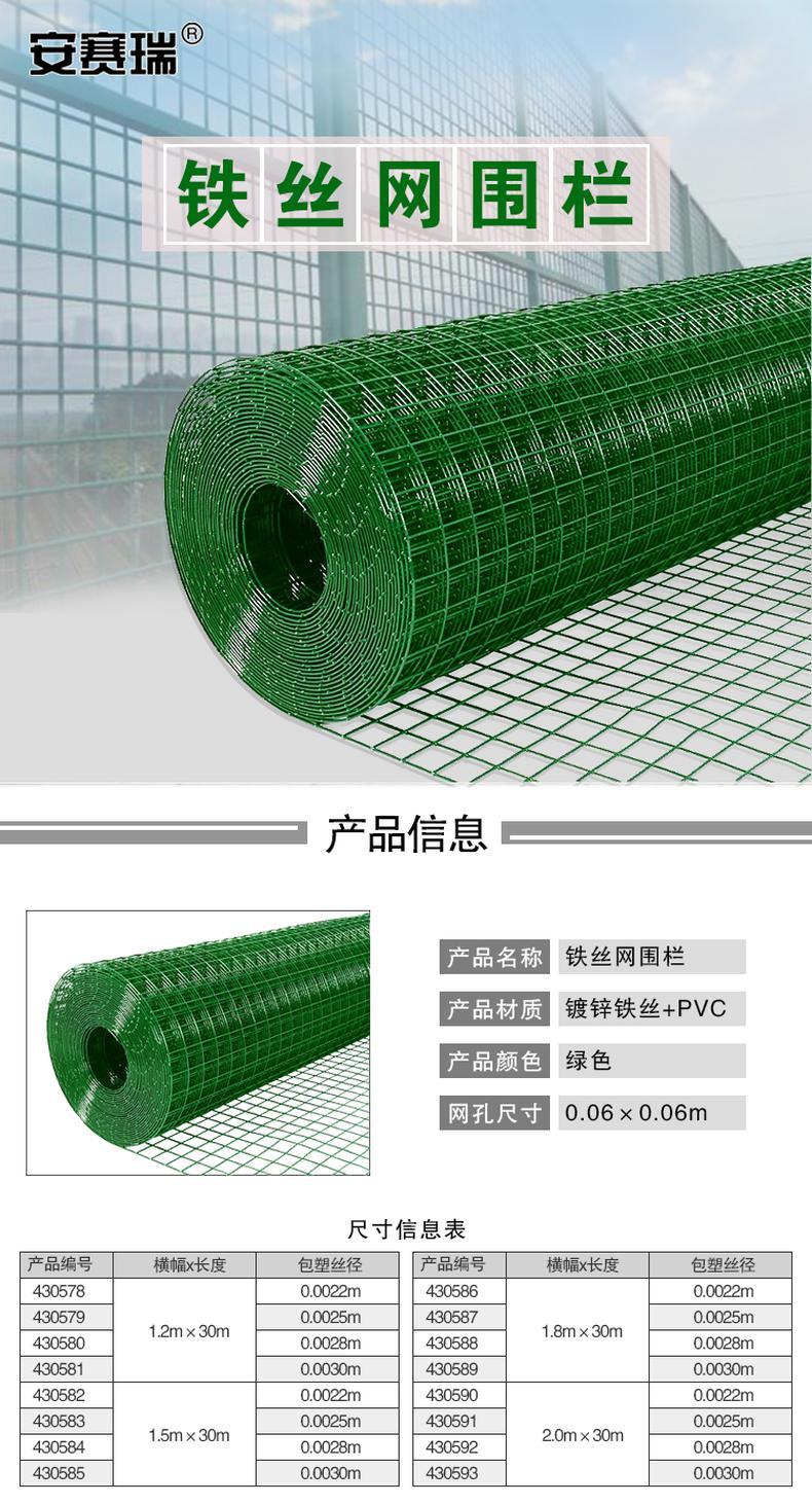 • 安赛瑞 430590 铁丝网围栏 2m×30m 网孔6×6cm 包塑丝径2.2mm按(包)销售