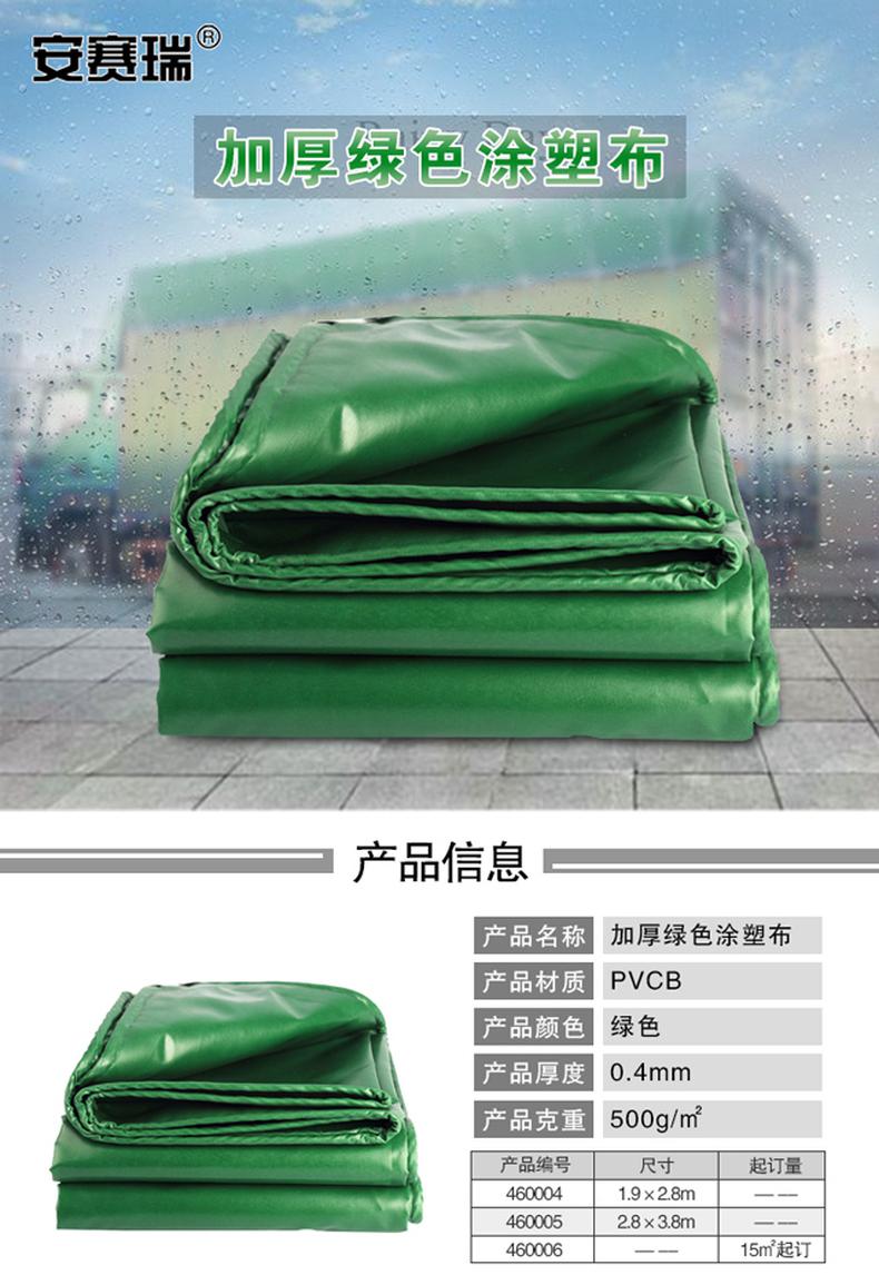安赛瑞 460004 加厚防雨布 绿色耐磨苫布油布 1.9×2.8m 厚度0.4mm按(张)销售   收藏