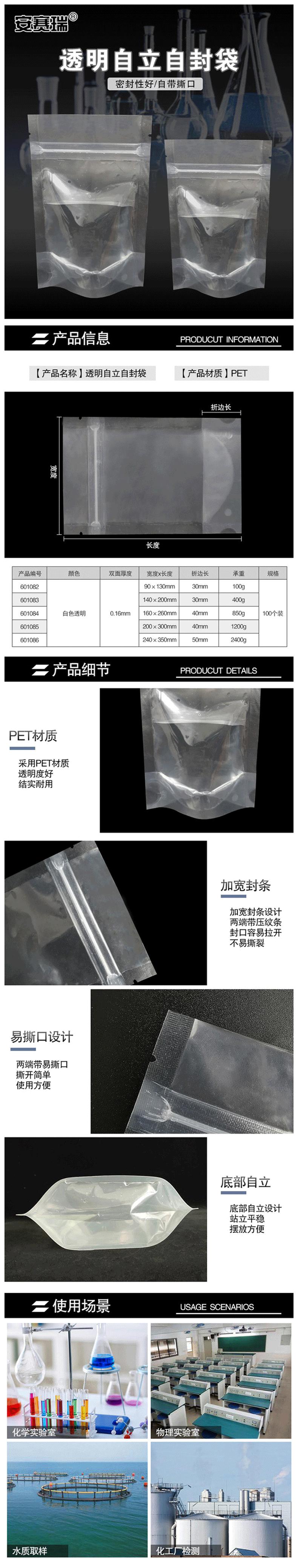 供应商:史泰博 品牌:安赛瑞 产地:中国 重量:0.000KG 销售单位:包 包装清单:透明自立自封袋*1