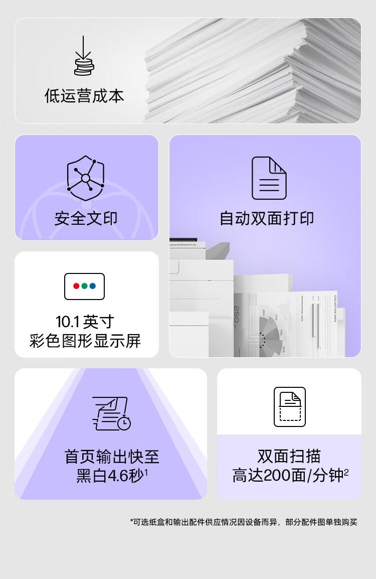 | 纸张容量 | 2180页:520*4层纸盒+100页多用途纸盒 |