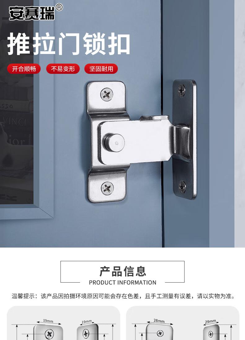 供应商:史泰博 品牌:安赛瑞 产地:中国 重量:0.000KG 销售单位:个 包装清单:304不锈钢推拉门锁扣 移门门栓直角搭扣 大号*1
