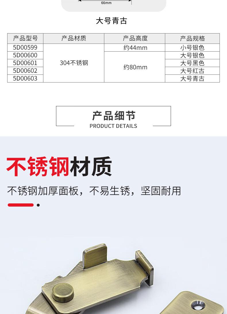 • 安赛瑞 5D00602 304不锈钢推拉门锁扣 移门门栓直角搭扣 大号 28x80mm 红古  2个起订按(个)销售