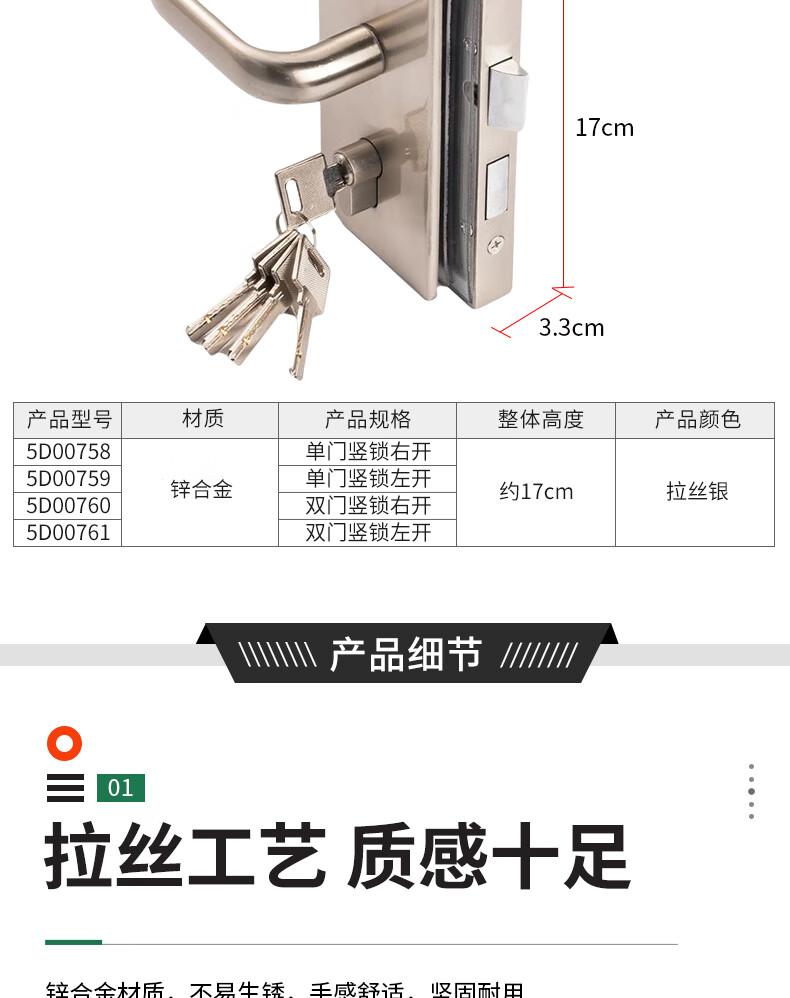 供应商:史泰博 品牌:安赛瑞 产地:中国 重量:0.000KG 销售单位:把 包装清单:玻璃门锁 执手锁 双门左开竖锁*1