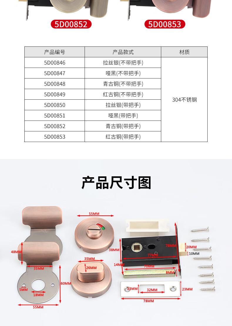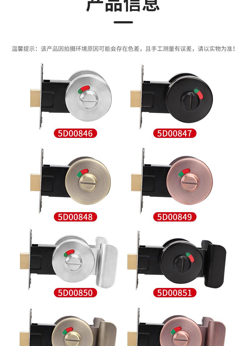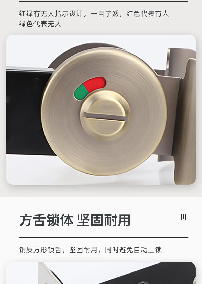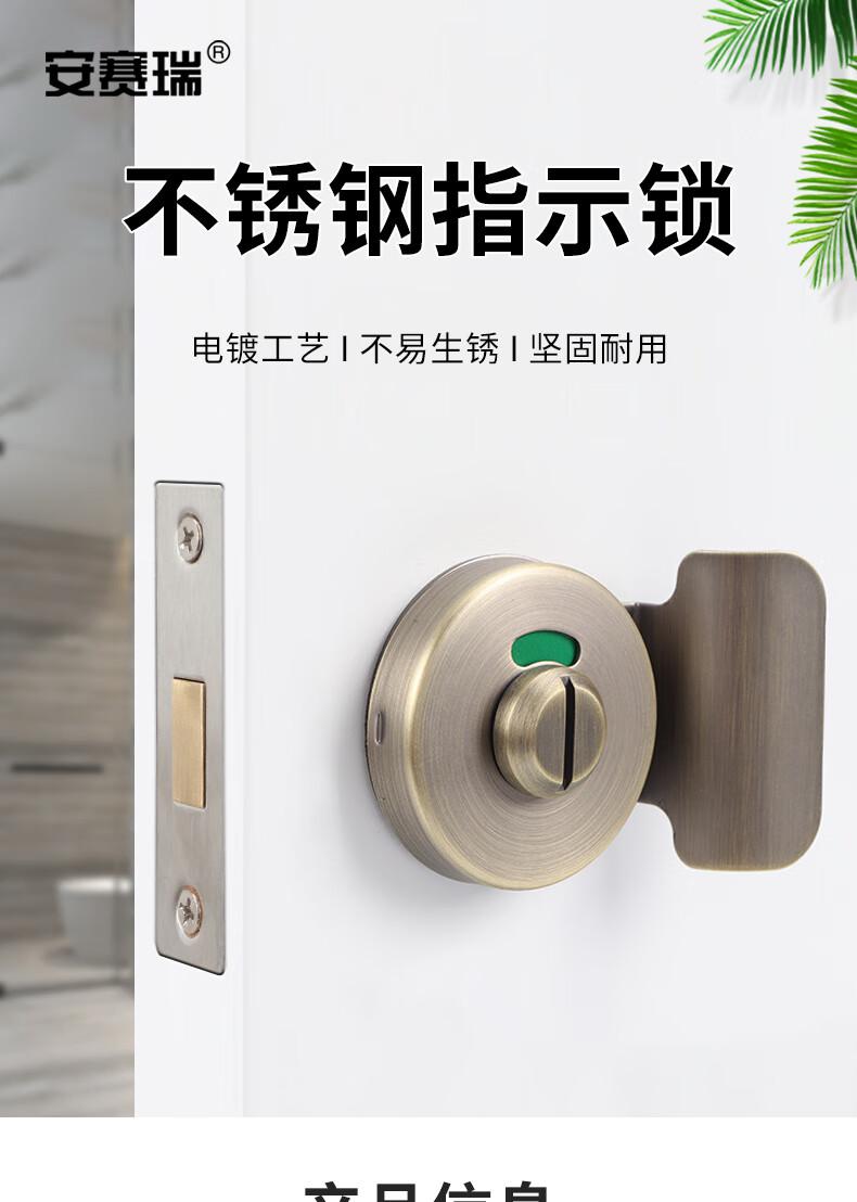 • 安赛瑞 5D00852 卫生间指示锁 304不锈钢有无人提示隔断门锁 带把手 直径约55mm 青古铜按(把)销售