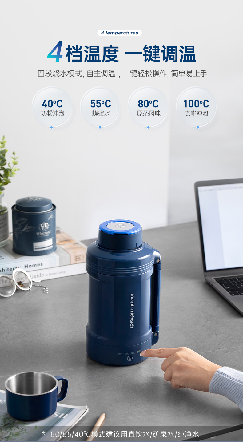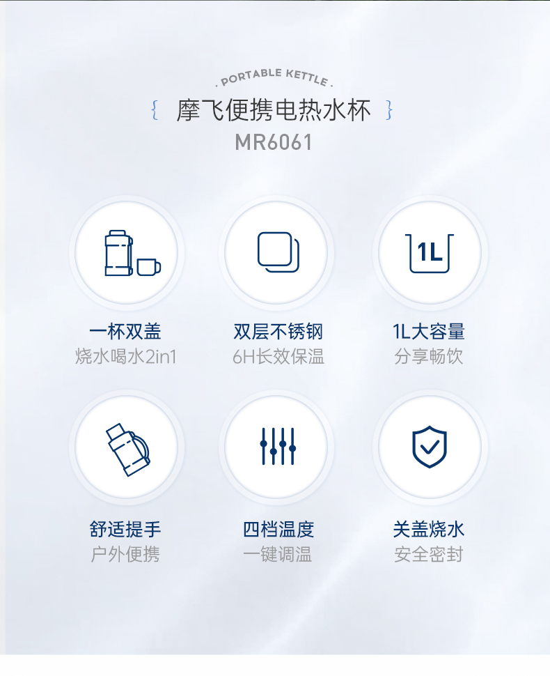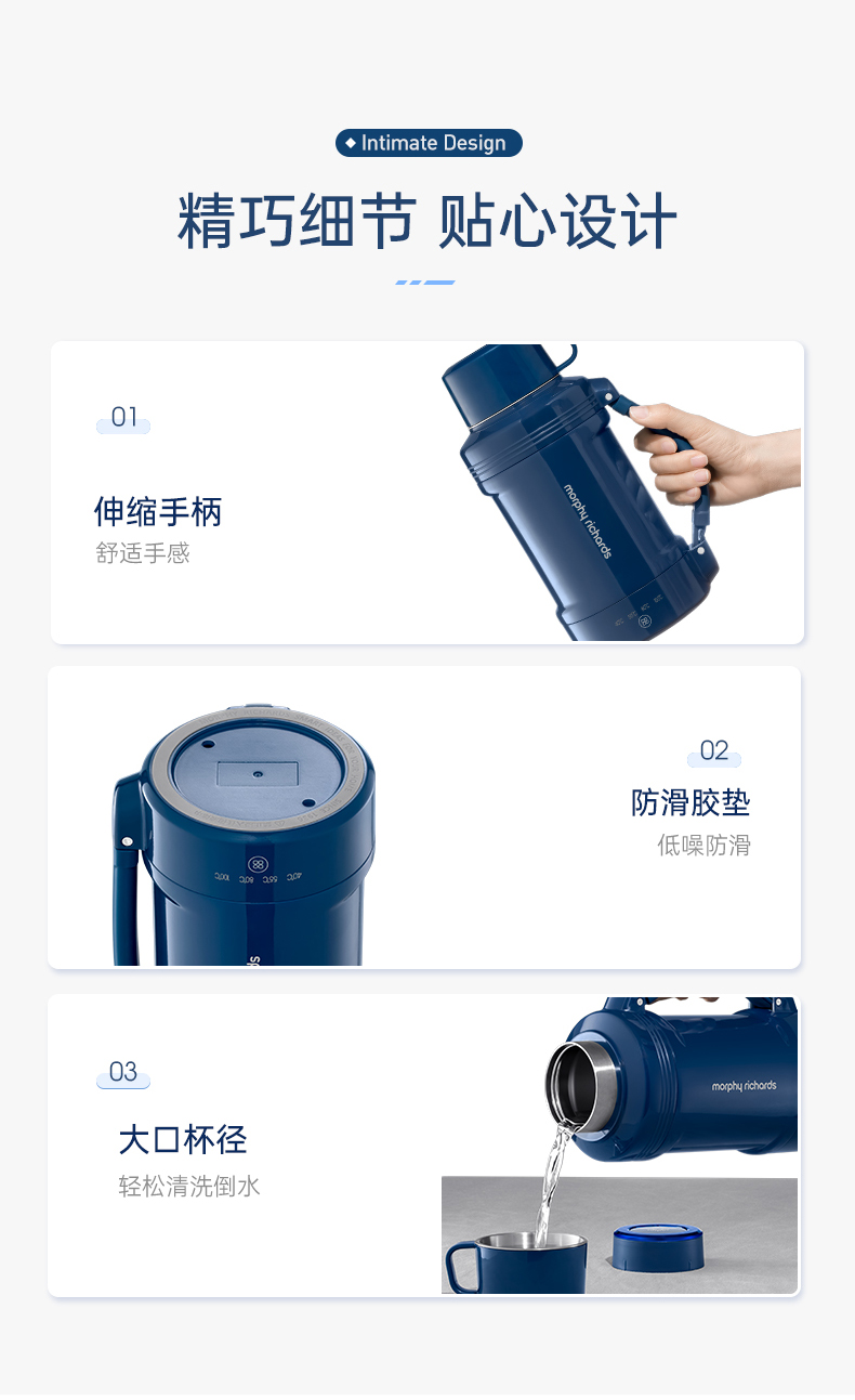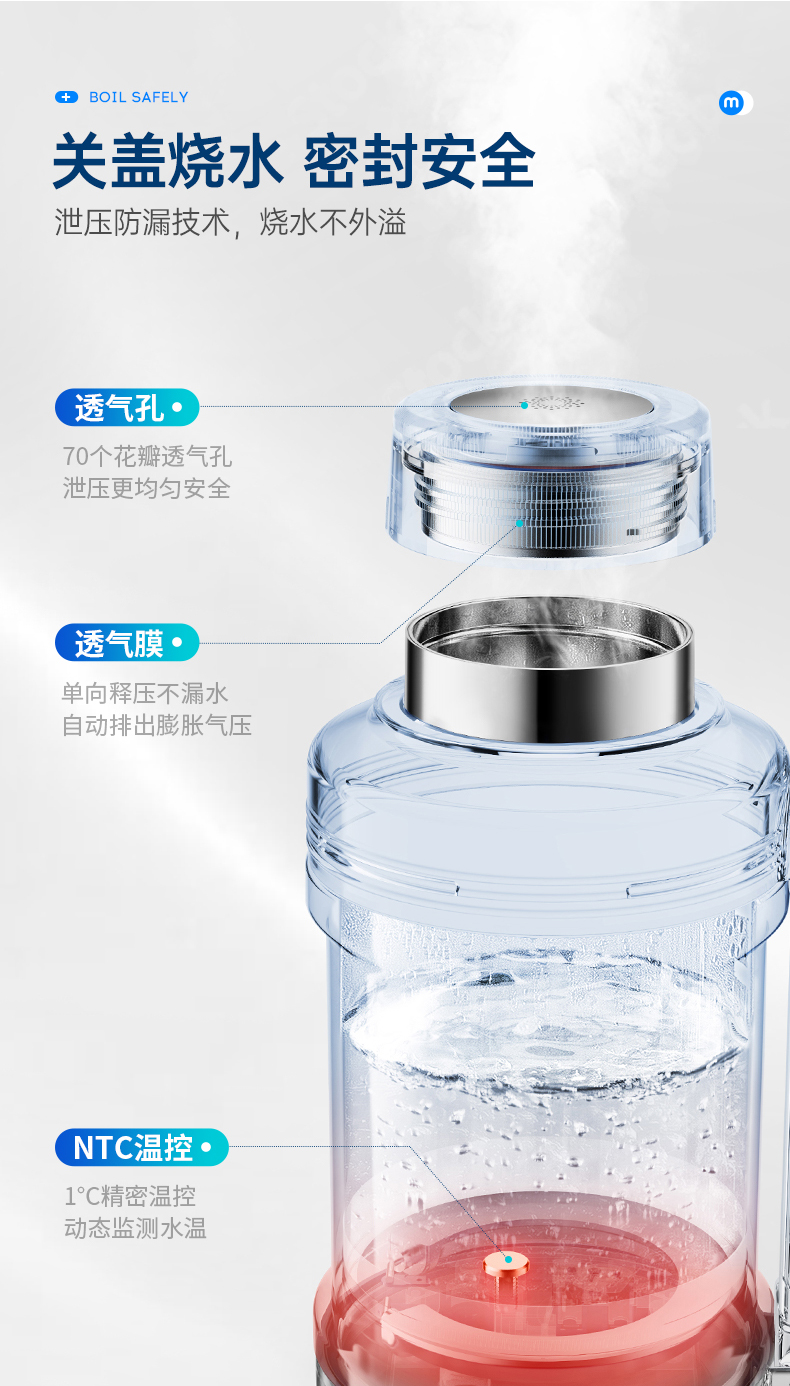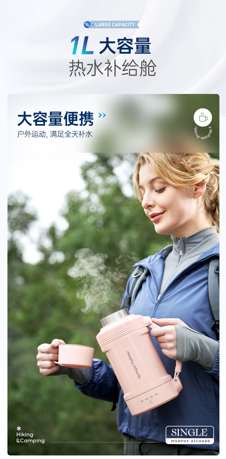 | 特色功能 | 1、伸缩手柄,舒适手感;2、双重密封,旅途不洒漏; 3、四档温度,一件调温; 4、一杯双盖,煮水喝水2in1; 5、双层不锈钢,健康材质; 6、真空保暖,6H持续温暖; 7、1L大容量,随享热水;8、关盖烧水,安全密封。 |