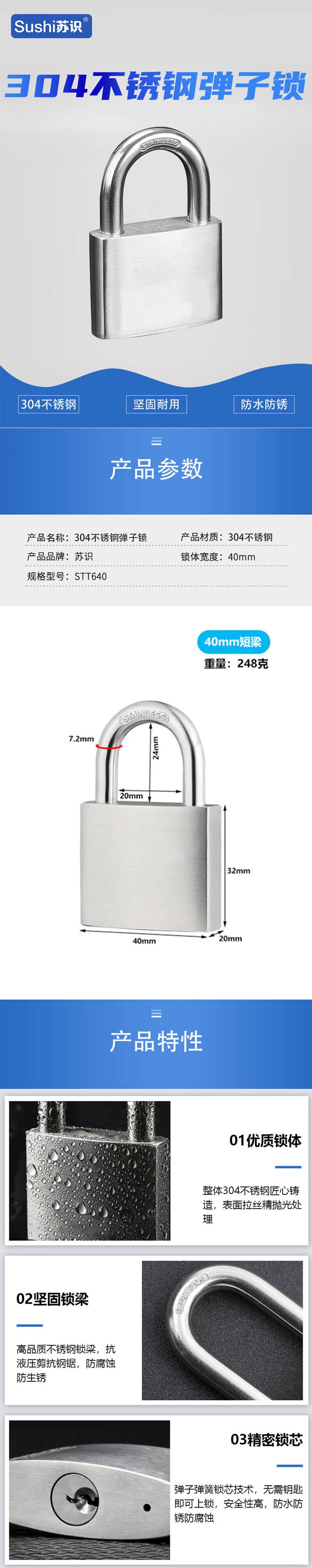 苏识 1610805 短梁304不锈钢弹子锁挂锁 STT640 银色按(个)销售   收藏