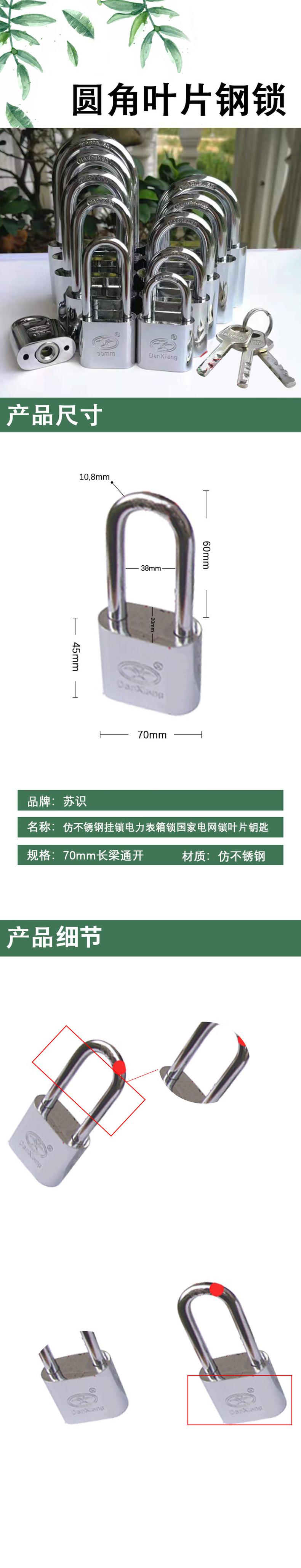 苏识 1610530 仿不锈钢挂锁电力表箱锁 70mm长梁通开 2把起订按(把)销售   收藏