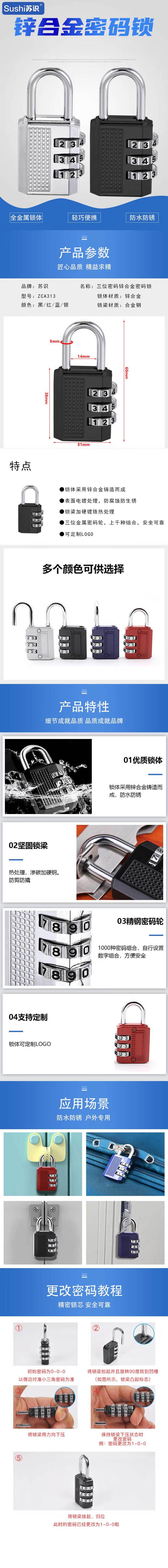 苏识 1670095 三位密码锌合金密码锁 ZCA313黑 3个起订按(个)销售   收藏