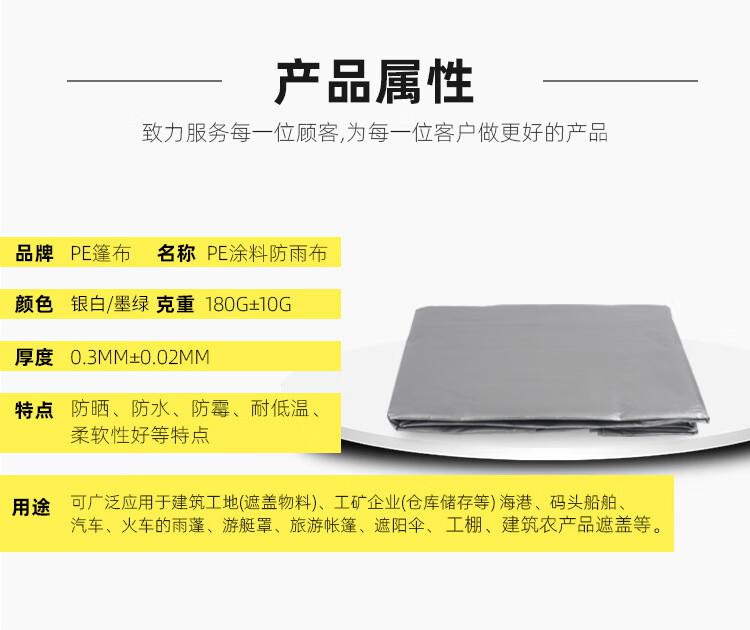 供应商:史泰博 品牌:柒亦辰 产地:中国 重量:0.000KG 销售单位:张 包装清单:180克军绿银加厚货场苫布农用PE塑料防雨防水防晒棚布*1