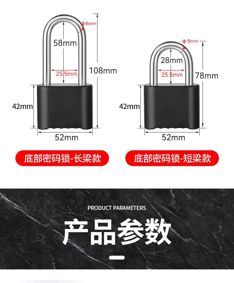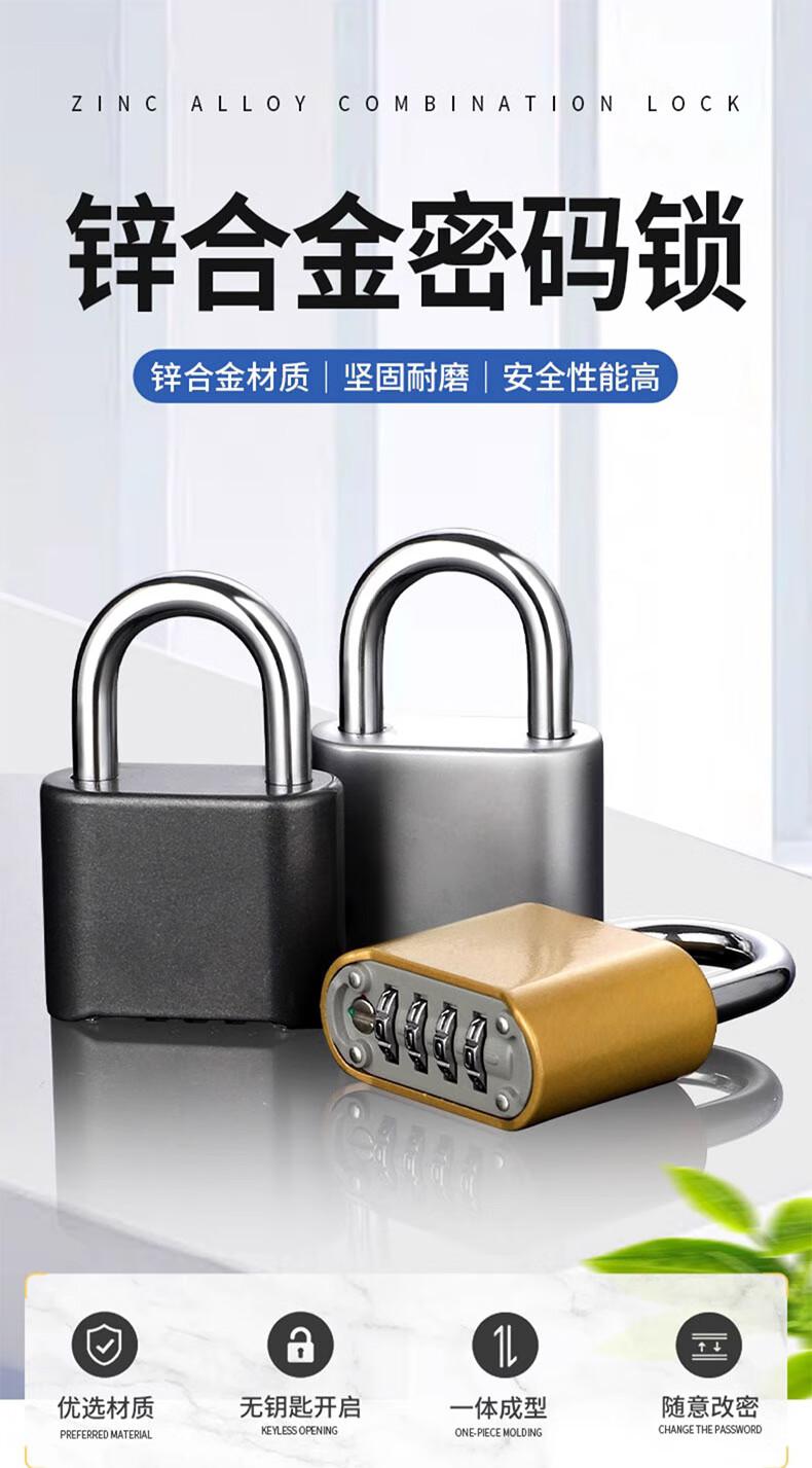柒亦辰 QYC-3308 密码挂锁防水防盗旅行箱锁 【普通款-长梁】金色 4个起订按(个)销售   收藏