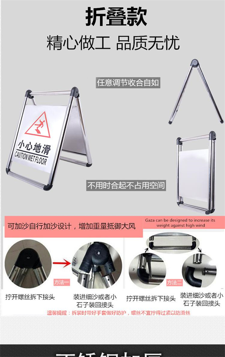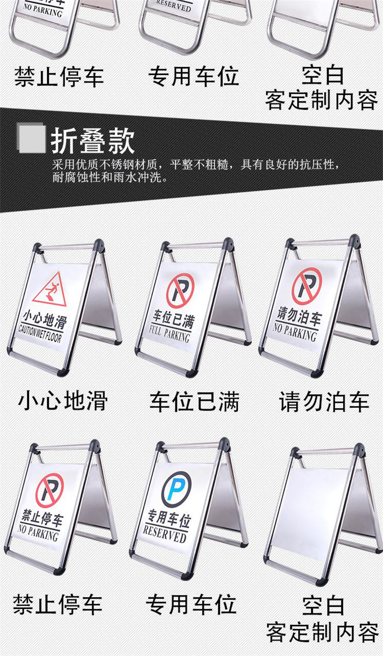 • 伏兴 C1202 不锈钢告示牌 金属A字牌警示牌人字提示牌告知牌 一体式-空白款按(个)销售