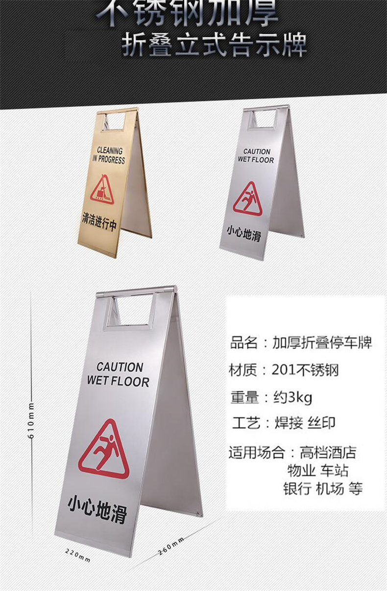 供应商:史泰博 品牌:伏兴 产地:中国 重量:0.000KG 销售单位:个 包装清单:不锈钢告示牌 金属A字牌警示牌人字提示牌告知牌*1